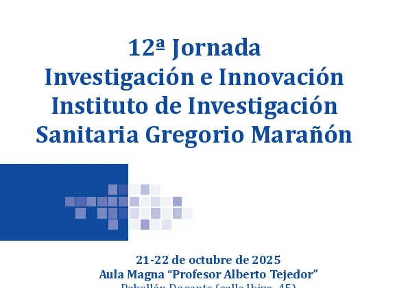 El Instituto de Investigación Sanitaria Gregorio Marañón (IiSGM) celebra los próximos días 21 y 22 de octubre su 12ª Jornada anual de Investigación e Innovación, en el Aula Magna del Pabellón Docente "Profesor Alberto Tejedor". El objetivo de la cita es distinguir la labor científica desarrollada en la entidad, ofreciendo un espacio común para compartir experiencias y resultados de la investigación e innovación en el marco del Instituto, tanto con la comunidad investigadora como con la población general.