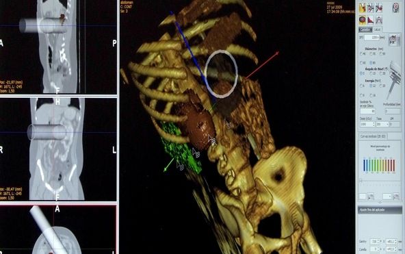 "Una radioterapia "casi segura" para el tratamiento de los tumores. Eso es lo que se puede conseguir con el primer simulador del mundo de radioterapia intraoperatoria que permite simular el comportamiento de los órganos del paciente en un proceso de cirugía oncológica. A partir de las imágenes en dos dimensiones de un escáner, explica Felipe Calvo, del Hospital Gregorio Marañón, se genera una visualización tridimensional «que aporta toda la información necesaria para que el oncólogo y el cirujano planifiquen el procedimiento quirúrgico y radioterápico antes de que el paciente reciba ninguna dosis de radiación, lo que contribuye a mejorar su calidad de vida y minimizar los riesgos»".