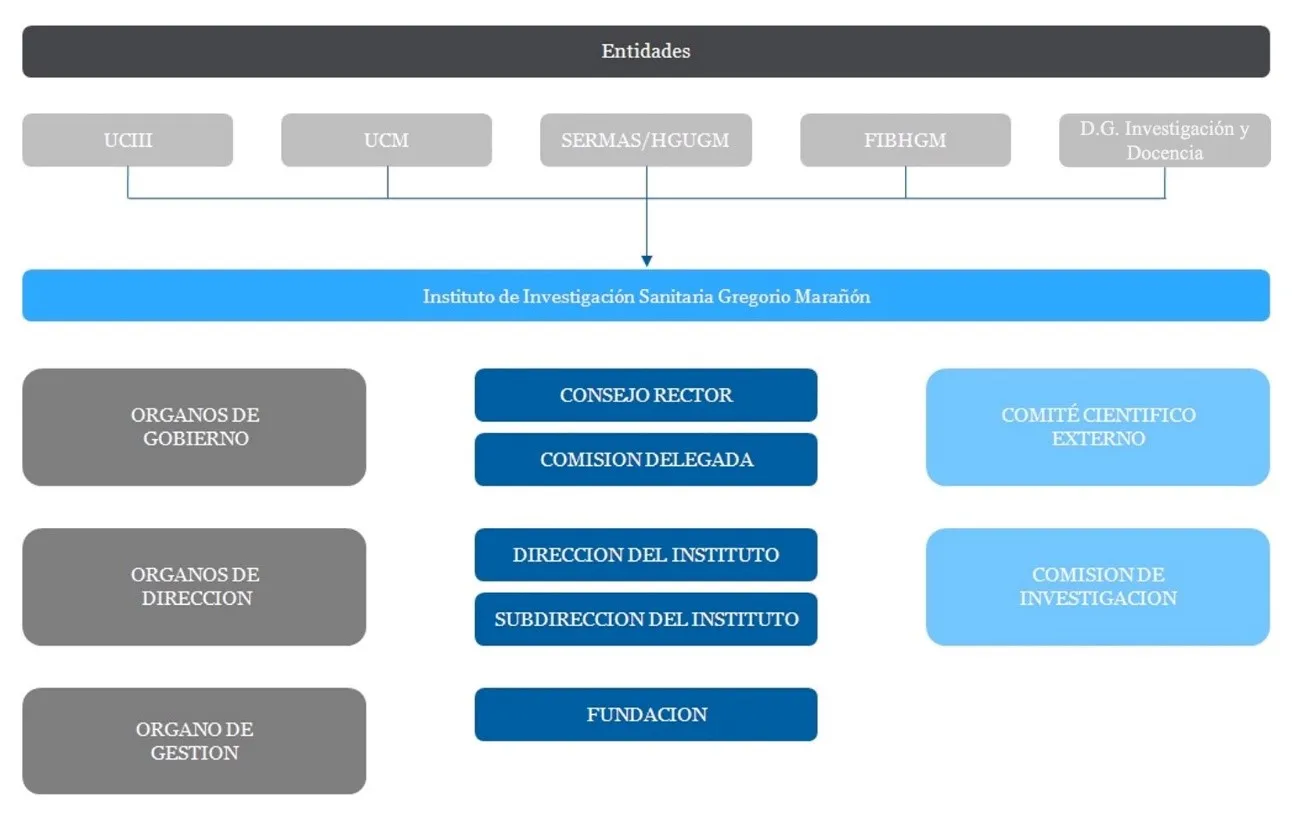 El Instituto está constituido por la Comunidad de Madrid a través de la Consejería de Sanidad, el Servicio Madrileño de Salud (SERMAS), a través del Hospital Universitario Gregorio Marañón, que representa el núcleo básico del Instituto, y grupos del ámbito de Atención Primaria del área de influencia del Hospital, la Universidad Complutense de Madrid (UCM), la Universidad Carlos III de Madrid (UCIII MADRID) y la Fundación para la investigación biomédica del Hospital Gregorio Marañón (FIBHGM) y la Dirección General de Investigación, Formación e Infraestructuras Sanitarias de la Consejería de Sanidad de la Comunidad de Madrid.
